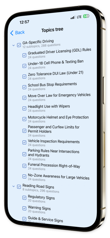Rev up your road skills with Georgia DMV Practice Test! Our app is your ultimate companion for mastering the driver's exam, immersing you in a realistic test environment that mirrors the official Georgia Department of Motor Vehicles experience.